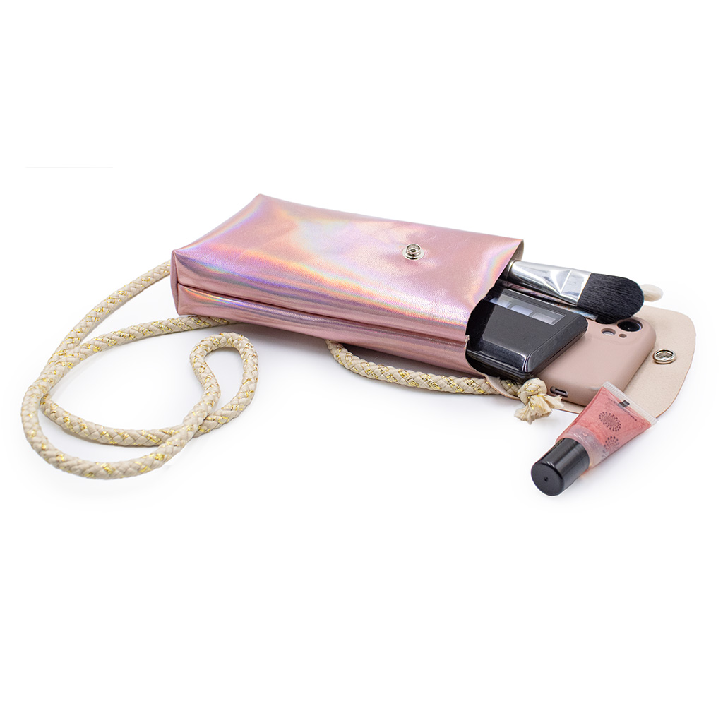 Com uma alça transversal, o Porta Celular é prático e ideal para o dia a dia, permitindo que suas clientes carreguem o celular de maneira segura e confortável. Além disso, ele pode ser produzido como uma peça única ou em composição com um kit personalizado que inclua necessaires e outros acessórios, criando uma linha de produtos coesa e sofisticada para a sua marca.